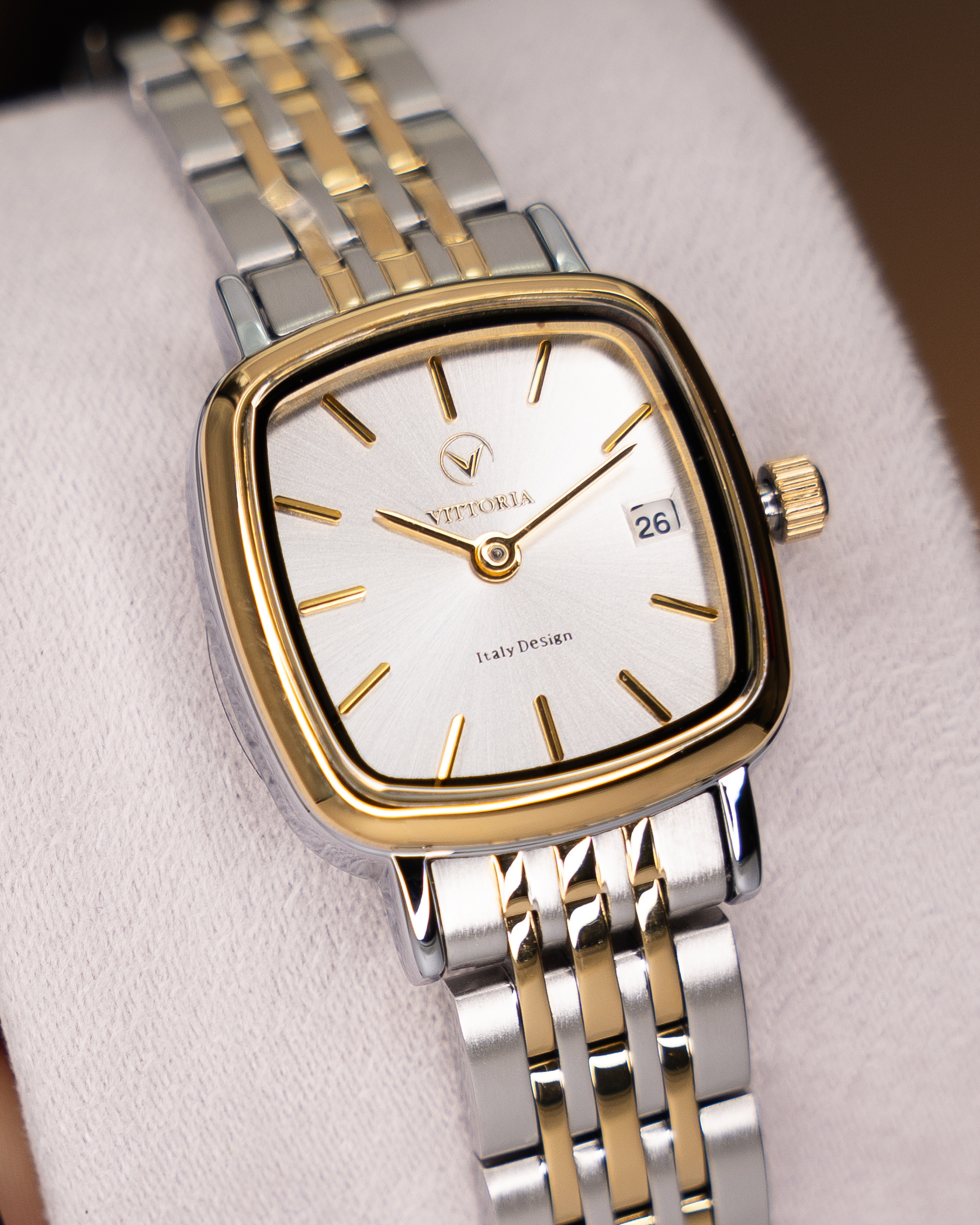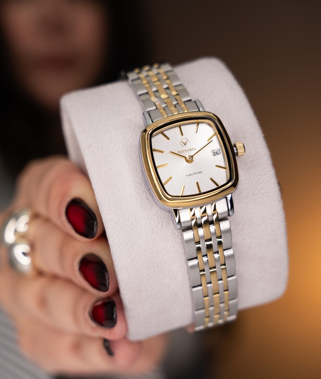 ساعت زنانه ویتوریا (Vittoria) تلفیقی از ظرافت زنانه و طراحی مدرن است. این ساعت با جزئیاتی دقیق و چشمنواز طراحی شده تا در هر استایلی، از روزمره تا مجلسی، بدرخشد. استفاده از متریال باکیفیت، موتور دقیق و دوام بالا باعث شده این ساعت نهتنها زیبا، بلکه کاربردی و ماندگار باشد.